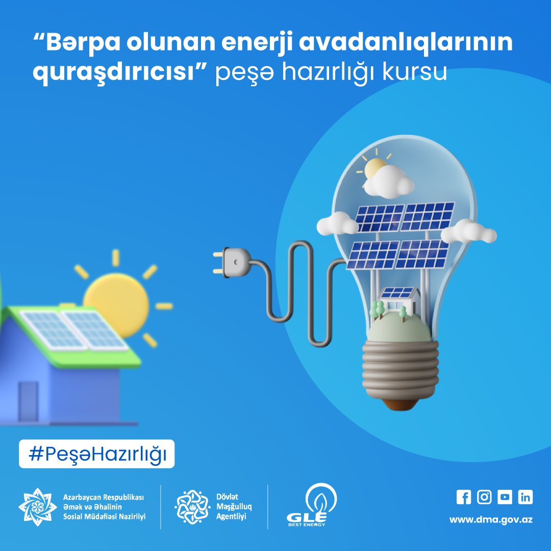 Bu dəfə Agentlik “GLE” MMC ilə birgə “bərpa olunan enerji avadanlıqlarının quraşdırıcısı” və “külək turbinlərinin quraşdırıcısı” istiqamətləri üzrə peşə hazırlığı kurslarının təşkilinə başlayır.
